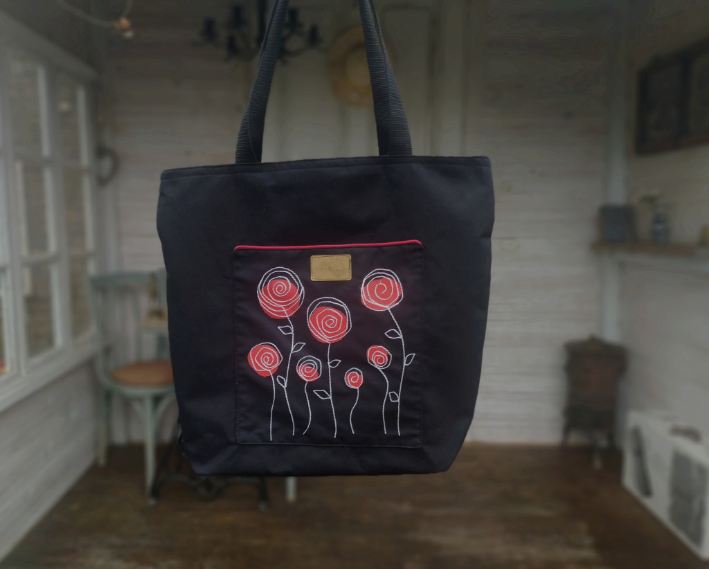 Méret: 43x48 cm, első zseb 26 x 24 cm, két vállánt 75 cm, három belső zseb.