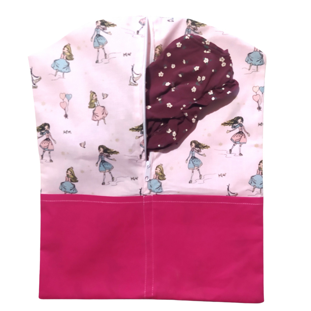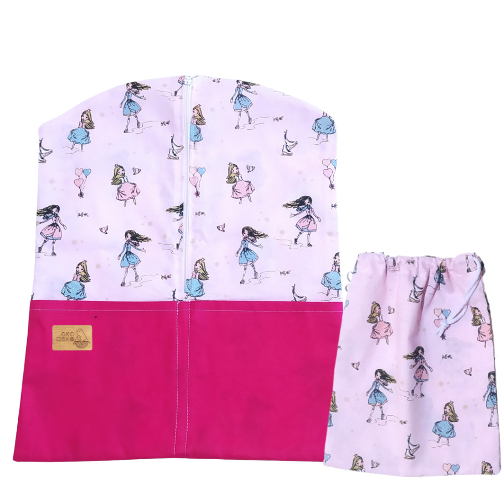 100% pamut textilből készült, strapabíró. Az ovis zsák cipzáras kialakítású, vállfára akasztható, kétpakolós zsebbel rendelkezik.