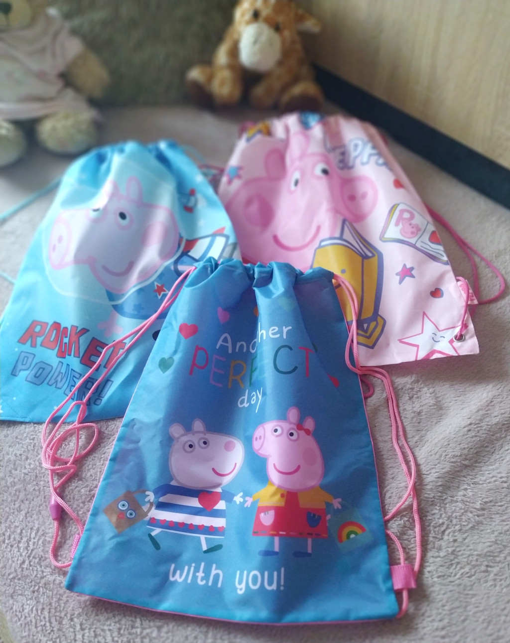 Peppa malac "Egy tökéletes nap veled" feliratú vízhatlan tornazsák.