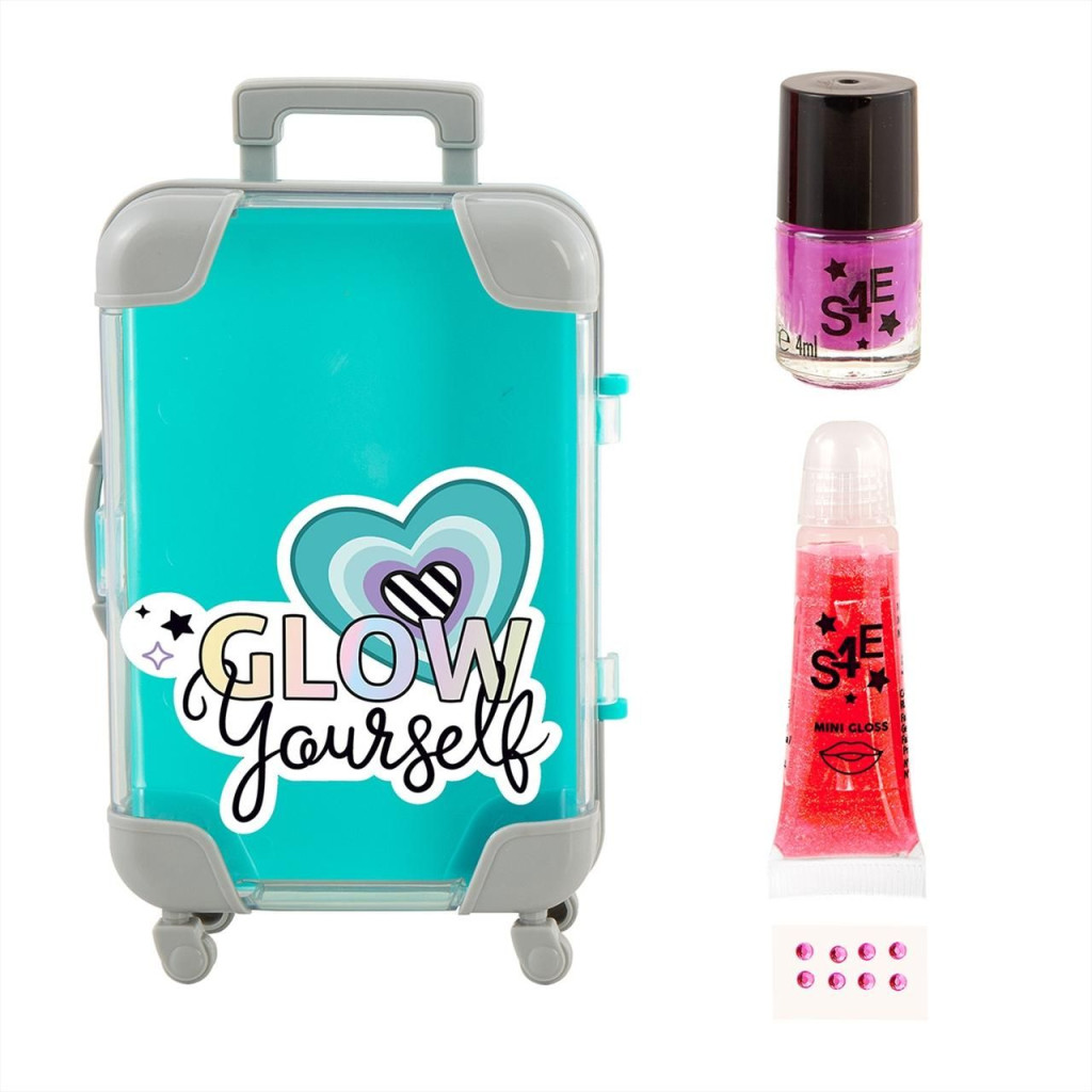 Ez a trendi kis szett egy vagány, kerekes bőrönd formájú tokban érkezik, amely már önmagában is figyelemfelkeltő. Három különböző változatban kapható, mindegyik tartalmaz egy ajakbalzsamot, egy körömlakkot, valamint egy mini dekorációs szettet, amellyel a körömdíszítés kreatív módon gyakorolható.