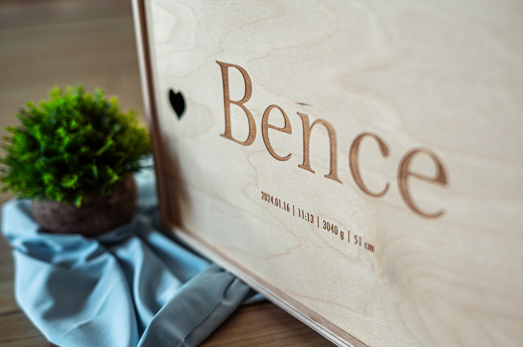 Őrizd meg a baba legszebb pillanatait egy különleges, névre szóló kézműves emlékőrző dobozban! Megkapod mellé babád első pihi-puhi alvókáját.